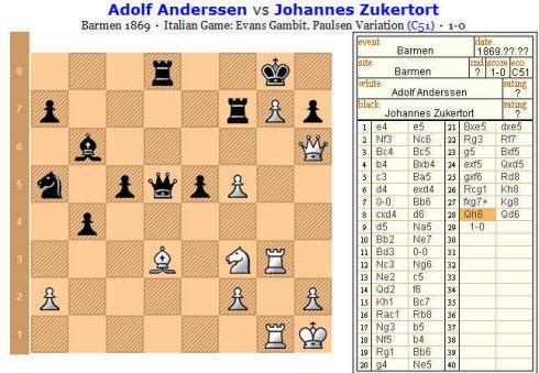 阿道夫·安德森(Adolf Anderssen,1818-1879),德國國際象棋棋手,戰(zhàn)術(shù)組合大師。19世紀國際象棋浪漫主義學派代表人物。